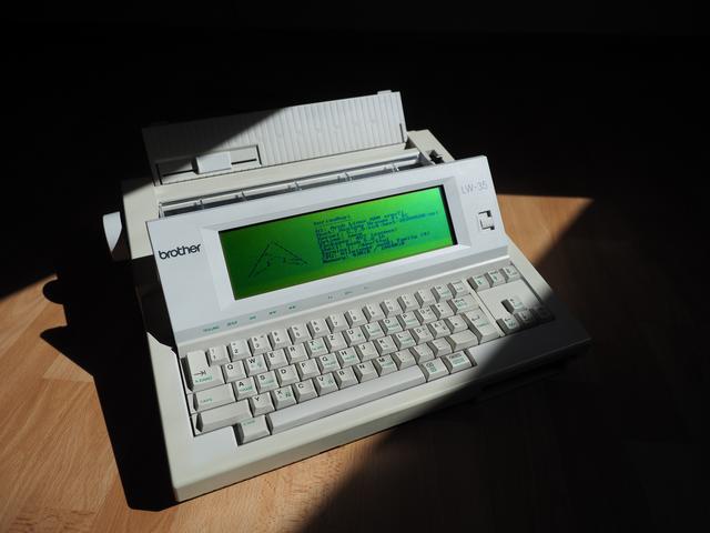 Do you still remember the old electronic typewriters from the nineties? Many of the later machines were already pretty much full-fledged computers, just with a word processor as the operating system. One of these typewriters is the Brother LW-35 released in Europe. I still had one of these lying around; Great keyboard, a fun daisy wheel printer, and a 14 line display for distraction free writing. It even had a floppy drive for data exchange. So in summary, a pretty cool device.